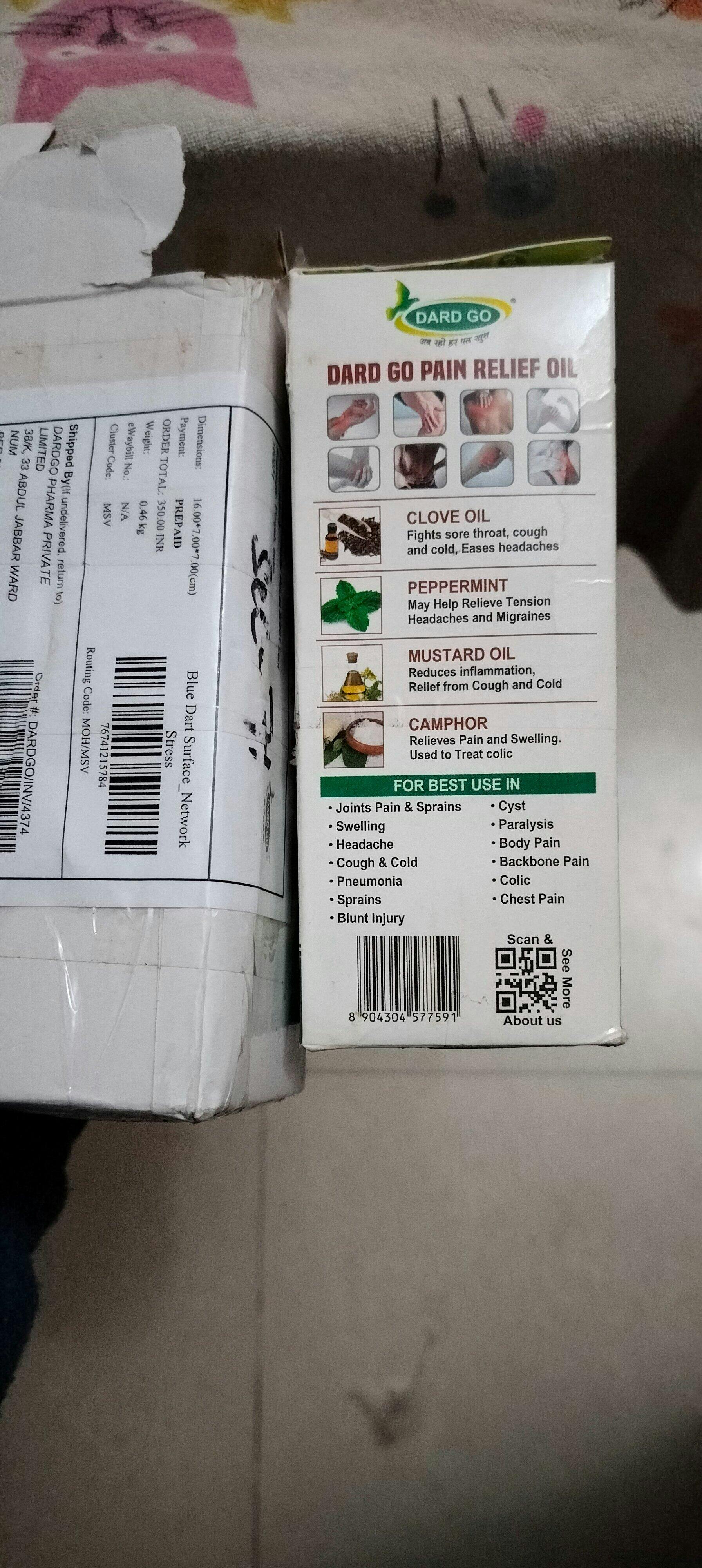 DardGo pain relief oil is a blend of Ayurvedic herbs and mixtures of well-known ingredients, such as Mustard Oil, Clove Oil, Camphor, Wintergreen Oil, and Peppermint.